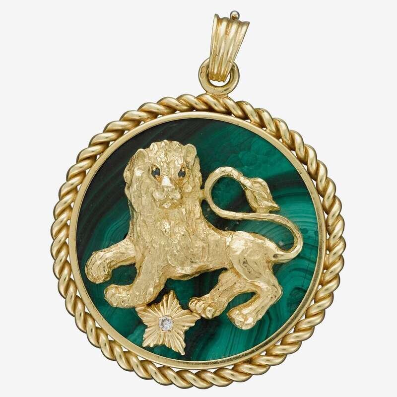 A malachite, diamond, emerald and eighteen karat gold zodiac pendant, Van Cleef & Arpels 1950
