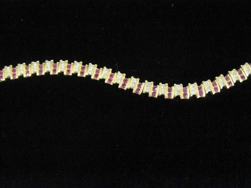 *A diamond, ruby and fourteen karat gold bracelet