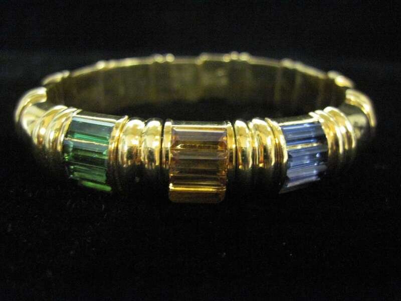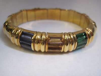 A gem-set and eighteen karat gold bangle bracelet