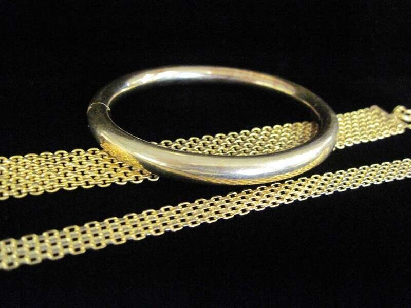including fourteen and eighteen karat gold; consisting of two bracelets and one bangle bracelet.