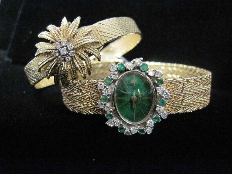 A collection of two diamond, gemset and fourteen karat gold bracelet watches
