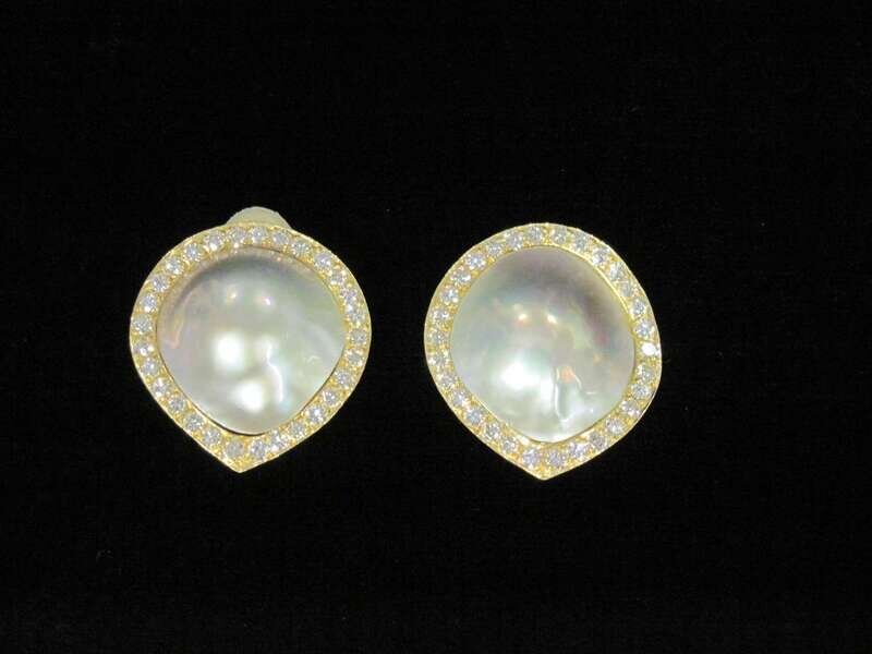 A cultured pearl, mabé pearl, diamond and fourteen karat gold necklace and ear-clips