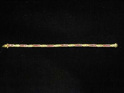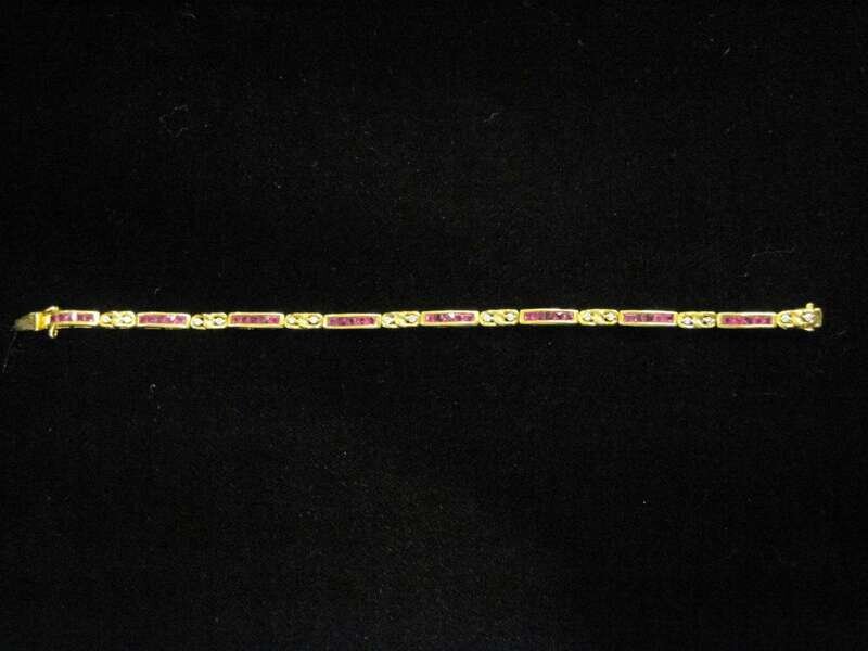 channel-set French-cut ruby links, accented with full-cut diamonds.