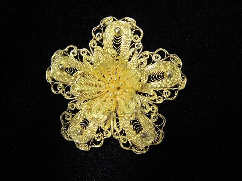 A collection of four fourteen karat gold flower brooches