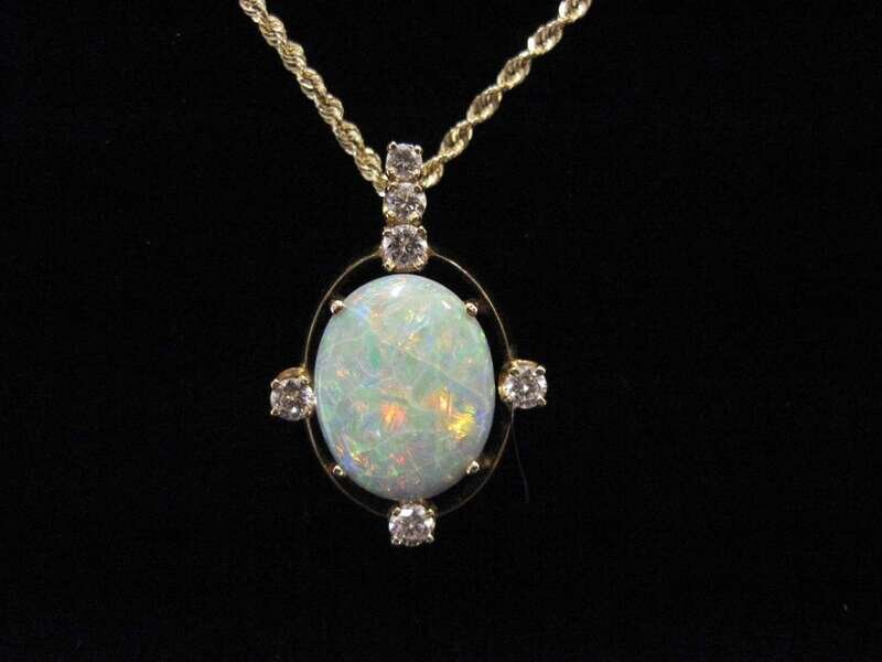 including ten, fourteen and eighteen karat gold; both centering oval cabochon opal accented by round brilliant-cut diamonds; total diamond weight approximately: 0.75 carat. *Please note: only select items shown in image.