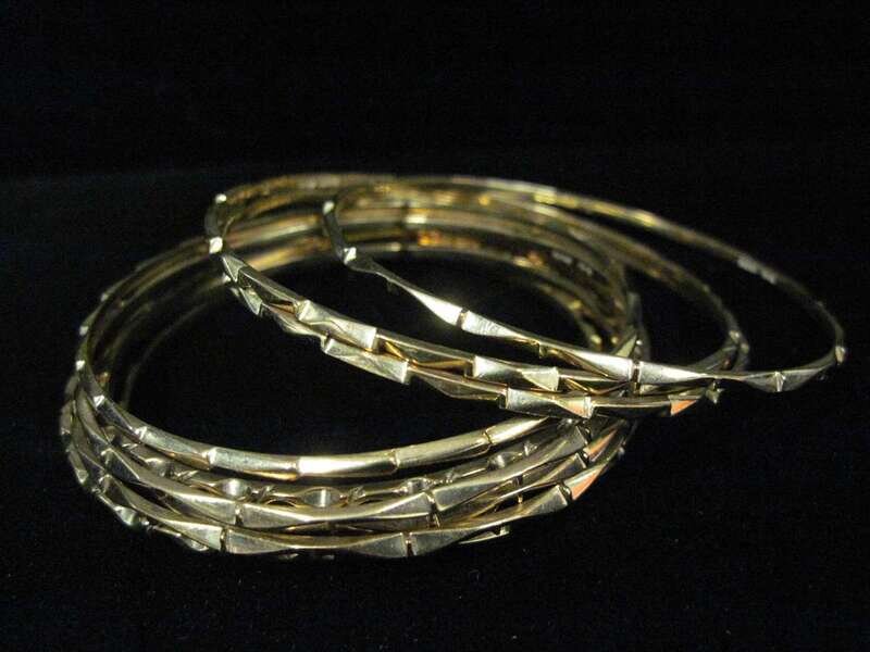 A collection of ten fourteen karat gold bangle bracelets