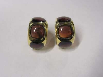 A pair of garnet and eighteen karat gold ear-clips