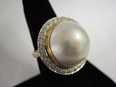 A cultured mabé pearl, diamond, eighteen karat gold earrings and ring