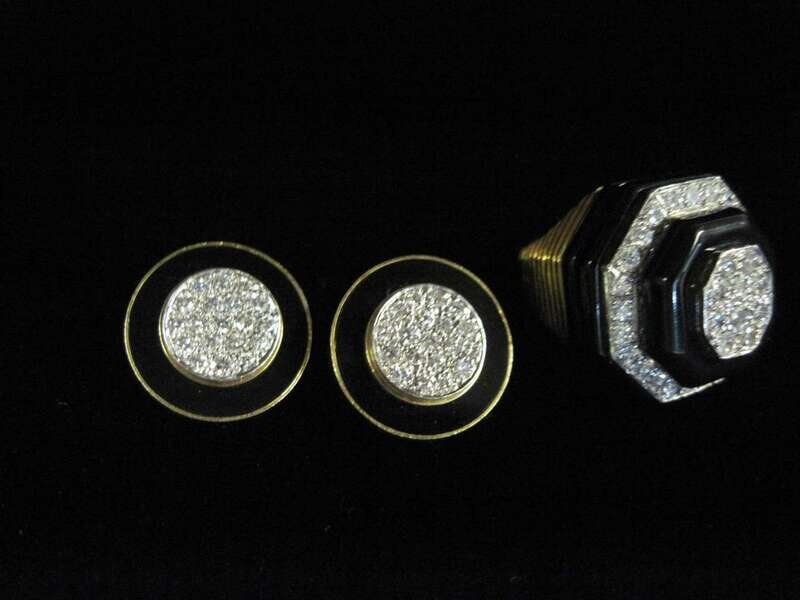 both with pavé-set diamonds and onyx; total diamond weight approximately: 3.15 carats.