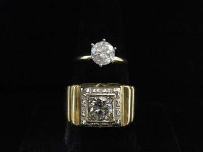 A collection of two diamond and gold rings
