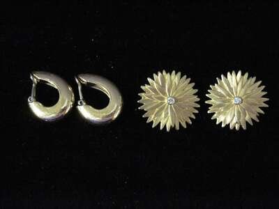 polished gold half-hoops; flower motif centering round brilliant-cut diamond; signed Elle Thompson.