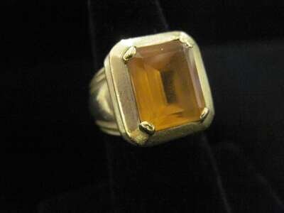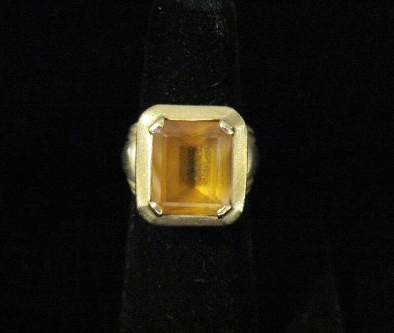 square step-cut citrine, bezel-set in matte gold; signed Vahe Naltchayan, 1997, USA.