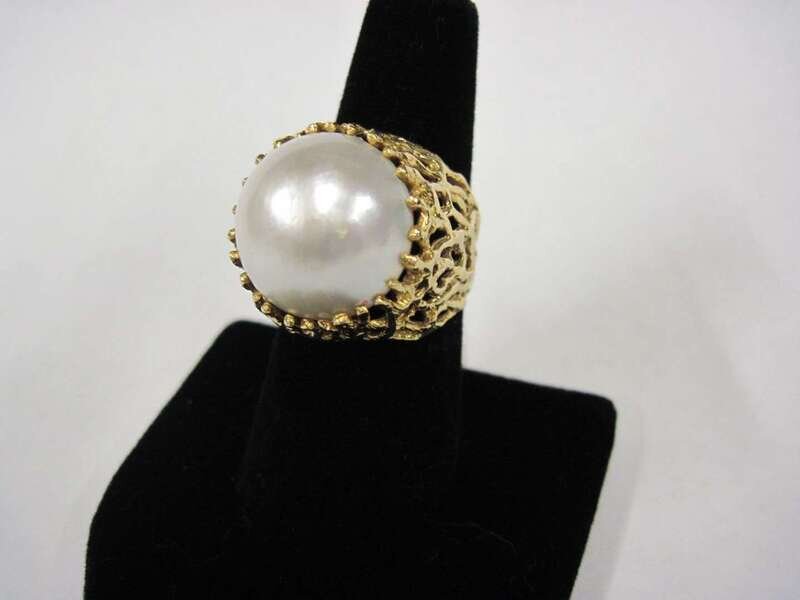 A cultured mabé pearl and fourteen karat gold ring