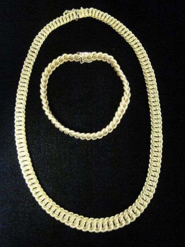 Weight: 38.5 dwt.; Necklace length: 17.25 in.; Bracelet length: 8 in.