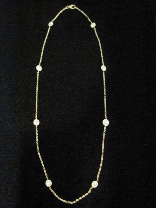diamonds by the yard style; bezel-set round brilliant-cut diamonds; total diamond weight approximately: 4.00 carats.