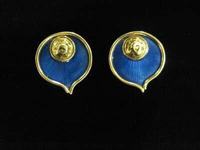 A pair of enamel and eighteen karat gold ear-clips, Elizabeth Gage