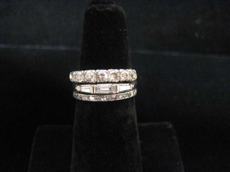 A collection of three diamond and platinum bands
