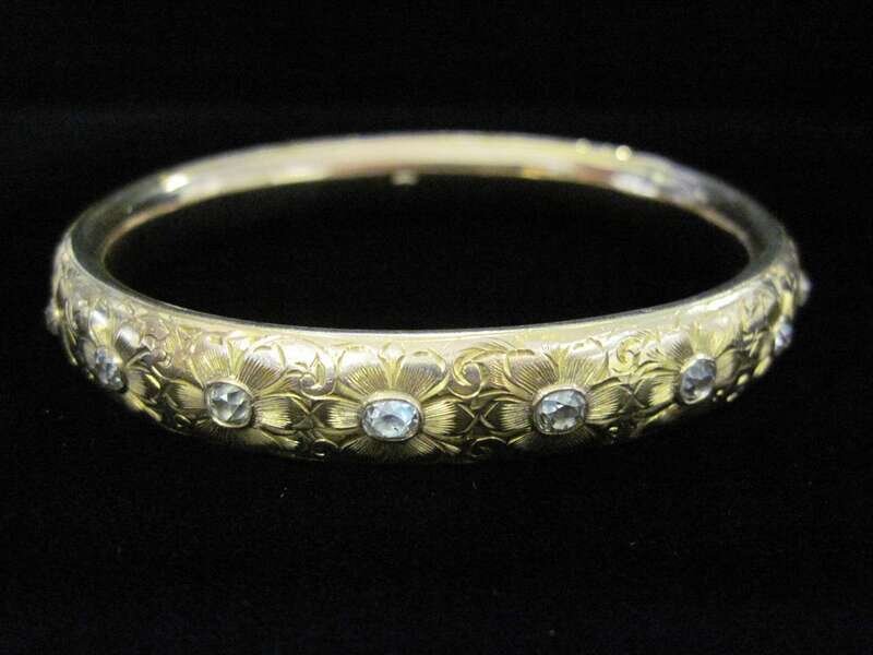 A Victorian diamond and fourteen karat gold bangle bracelet