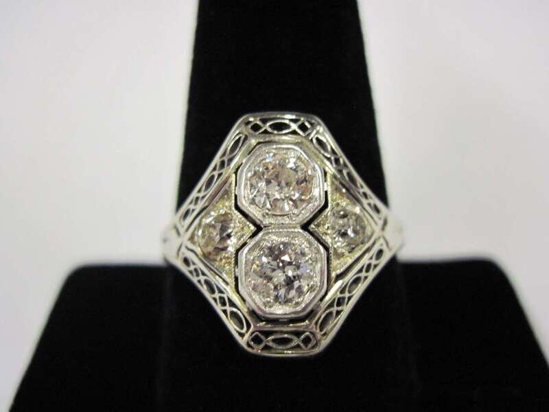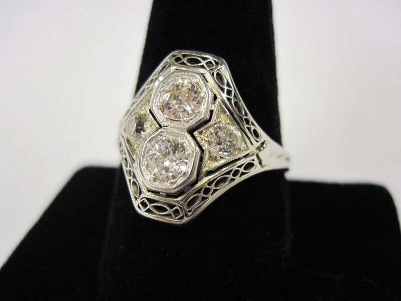 set with old mine and old European-cut diamonds; total diamond weight approximately: 0.75 carat.