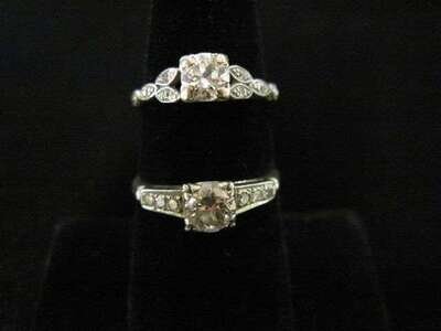 each centering one transitional-cut diamond and accented by single-cut diamonds; total diamond weight approximately: 1.25 carats.