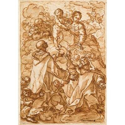GENOESE SCHOOL (17TH CENTURY) MADONNA AND CHILD WITH SAINTS