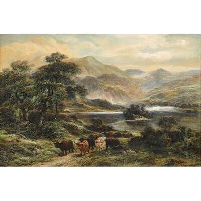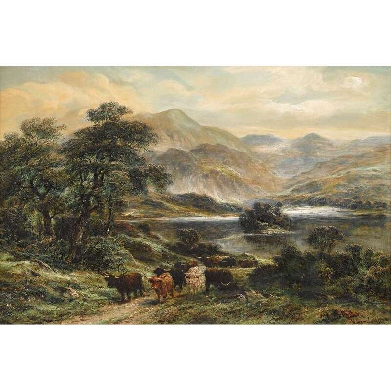 WILLIAM LANGLEY (BRITISH 1852-1922) HIGHLAND CATTLE BY A LOCH