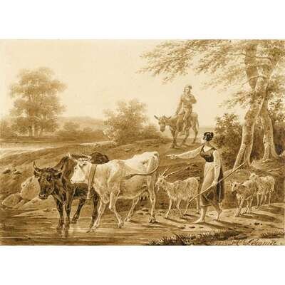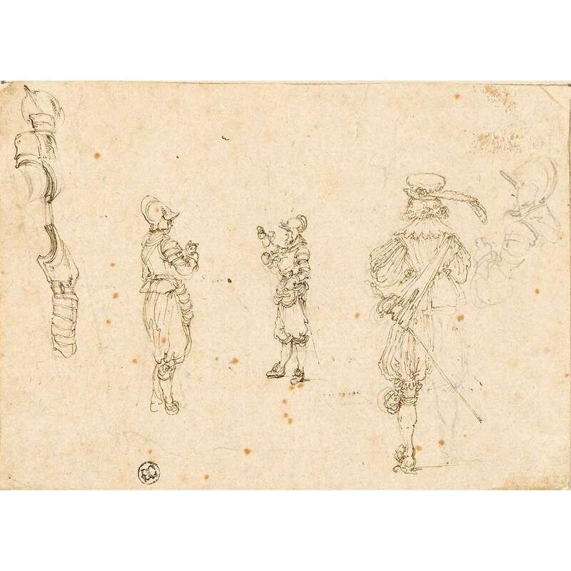 STEFANO DELLA BELLAHIPPOLYTE LECOMTEATTRIBUTED TO JEANNE RONGIERITALIAN SCHOOL (ITALIAN 1610-1664)(FRENCH 1781-1859)(FRENCH FL. 1869-1900)(19TH-20TH CENTURY) STUDY FROM THE ETCHING SERIES DESSINS DE QUELQUES CONDUITS DE TROUPES AND VARII CAPRICCI MILITARYSHEPHERDESS WITH CATTLE AND SHEEPWOMAN WITH A BOOK ON A BALCONYNAPLES