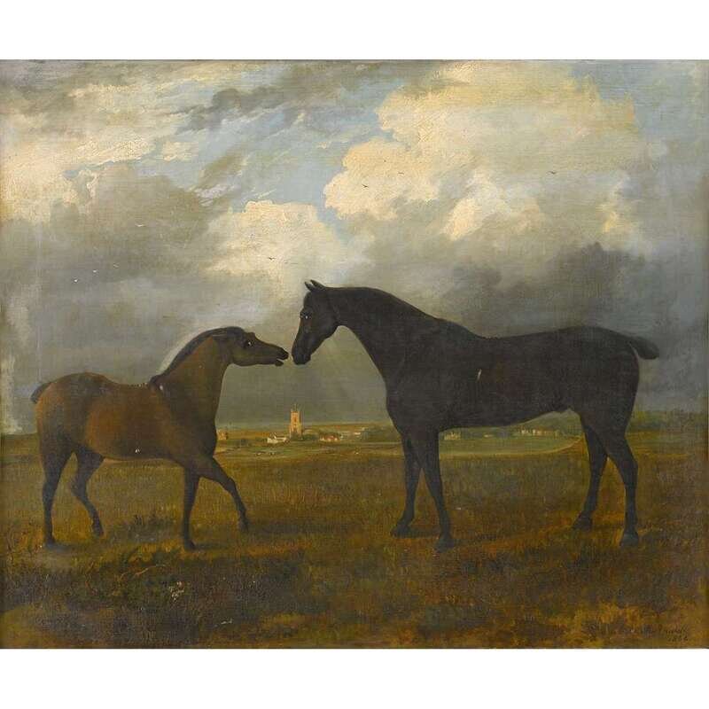 RICHARD ANSDELL (BRITISH 1815-1885) A CHESTNUT AND A DARK BAY