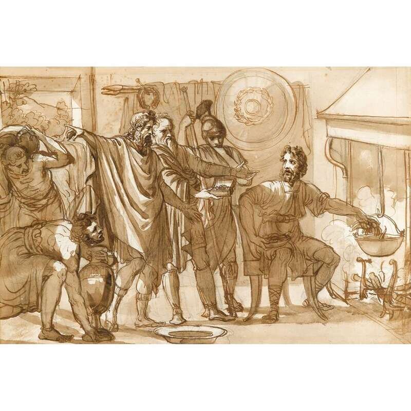 CIRCLE OF FELICE GIANI (ITALIAN 1758-1823) MUCIUS SCAEVOLA THRUSTING HIS RIGHT HAND INTO THE FLAMES BEFORE LARS PORSENNA