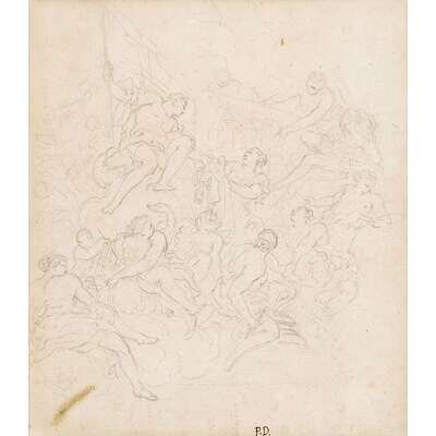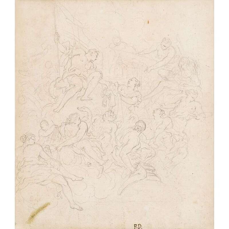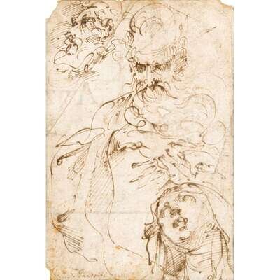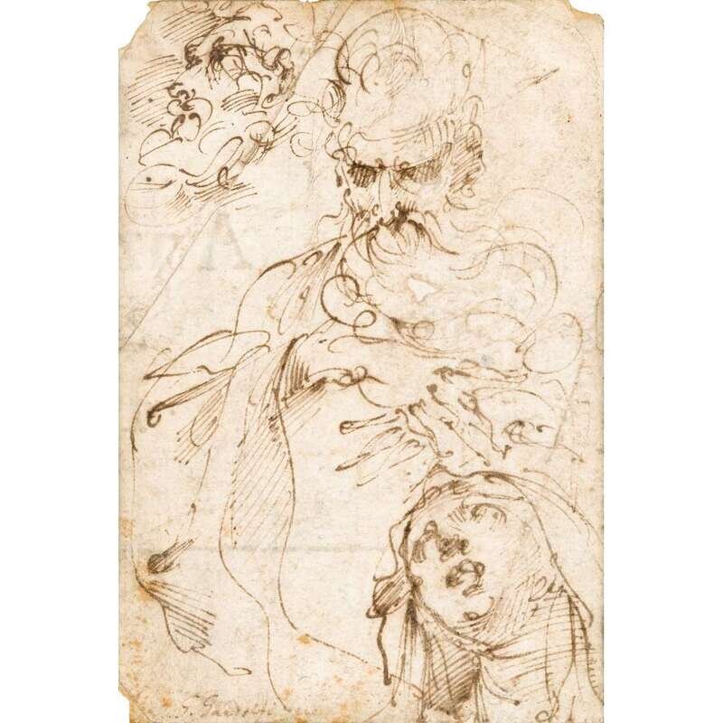 PIETRO DANDINILOMBARD SCHOOL (ITALIAN 1646-1712)(ITALIAN CA. 1630-1650) STUDY FOR CEILING FRESCOHEAD STUDIES