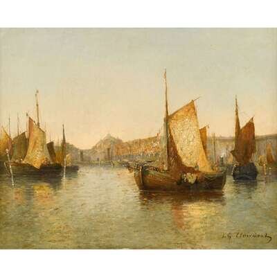 J. G. CLAIRMONT (CONTINENTAL 19TH CENTURY) HARBOR SCENE