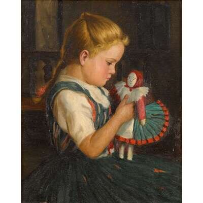 OSZKAR GLATZ (HUNGARIAN 1872-1958) GIRL AND HER DOLL