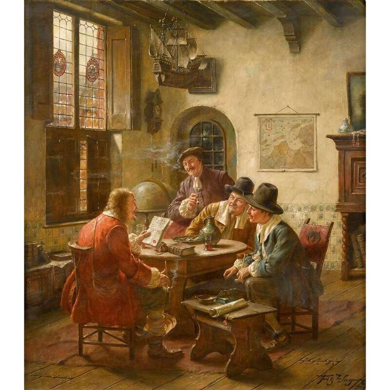 FRITZ WAGNER (GERMAN 1872-1939) READING THE DOCUMENT