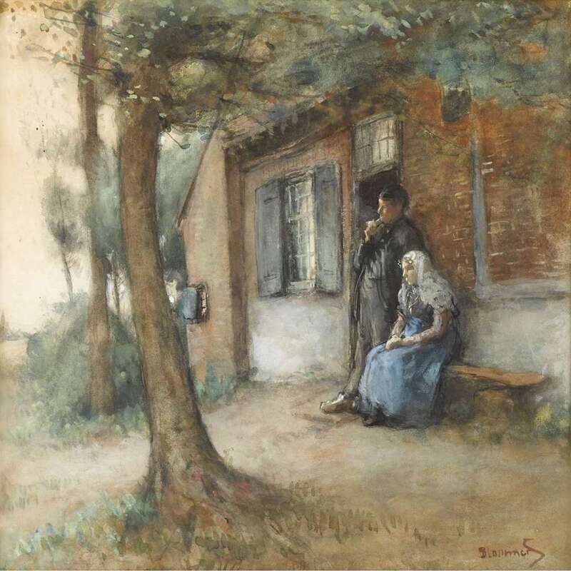 BERNARDUS JOHANNES BLOMMERS (DUTCH 1845-1914) A PAUSE IN THE DAY