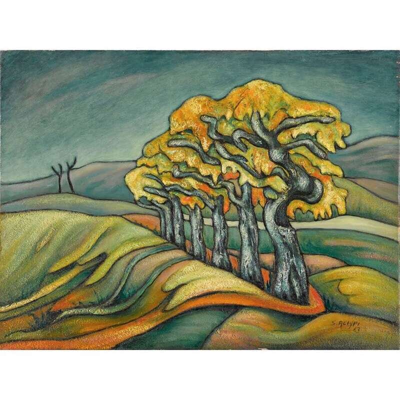 ZOE (SUZI) ACTYPI (GREEK 1927-1996) LANDSCAPE WITH ROW OF TREES
