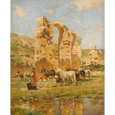VICTOR PIERRE HUGUET (FRENCH 1835-1902) CARAVAN AT REST