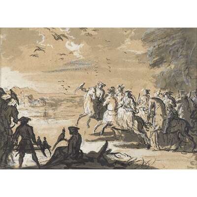 CHARLES PARROCELATTRIBUTED TO GABRIEL JACQUES DE SAINT AUBIN (FRENCH 1688-1752)(FRENCH 1724-1780) HAWKING PARTYGIRL WRITING A LETTER