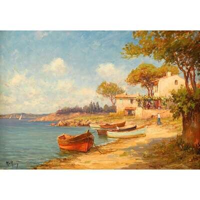 CHARLES MALFROY (FRENCH 1862-1918) BOATS ON THE SHORE