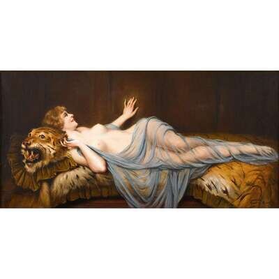 FRANÇOIS MARTIN-KAVEL (FRENCH 1861-1931) RECUMBANT NUDE ON TIGER SKIN RUG