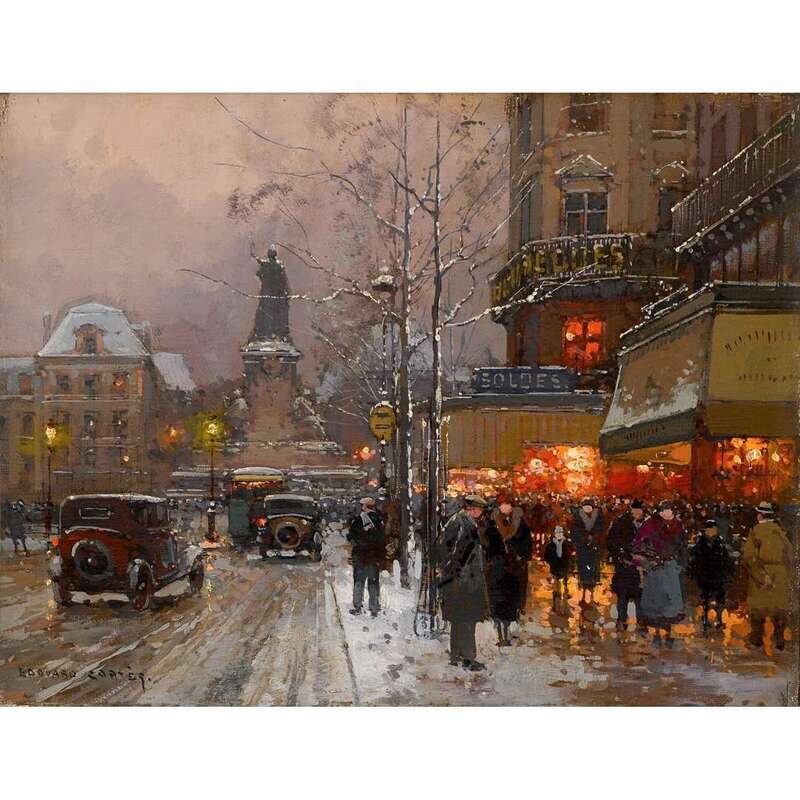 EDOUARD LÉON CORTÈS (FRENCH 1882-1969) "PLACE DE LA RÉPUBLIQUE, SOIR DE NEIGE"