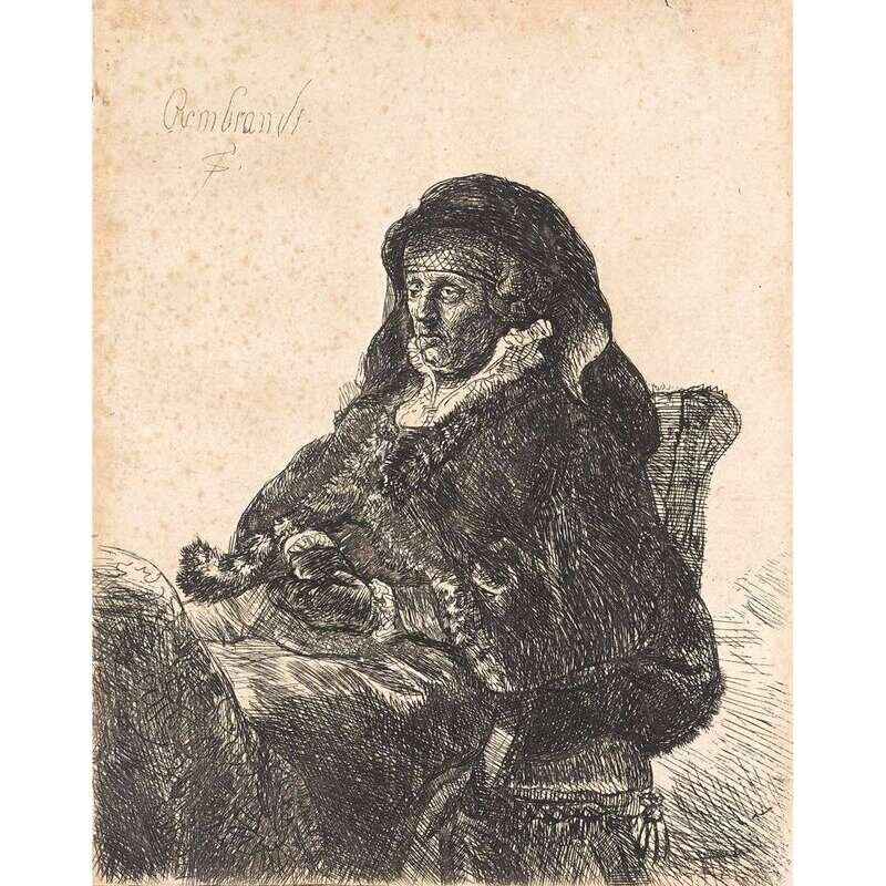 REMBRANDT VAN RIJN (DUTCH 1606-1669) "THE ARTIST'S MOTHER SEATED, IN WIDOW'S DRESS AND BLACK GLOVES"