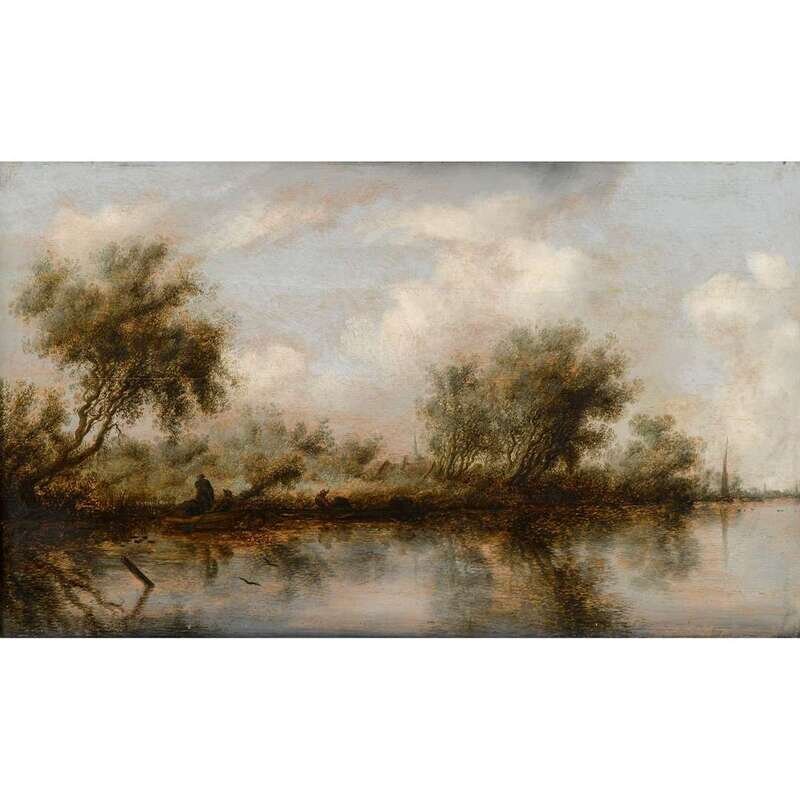 SALOMON VAN RUYSDAEL (DUTCH C.1602-1670) LANDSCAPE WITH RIVER AND FIGURES ON BANK
