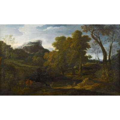 FOLLOWER OF FREDERICK DE MOUCHERON (DUTCH 1633-1686) EXTENSIVE LANDSCAPE WITH SHEPHERD AND FLOCK