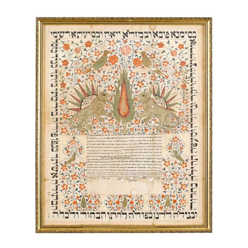 Qajar illustrated marriage contract, kettubah likely Isfahan, late 19th/early 20th century