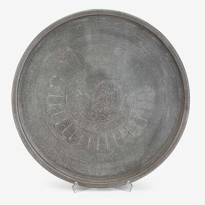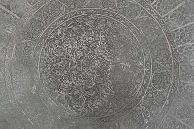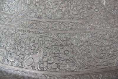 Fine and large Qajar engraved steel tray 18th century or possibly later