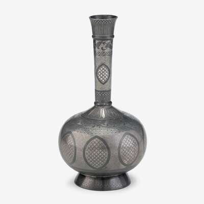 Qajar silver damascened steel vase late 19th/early 20th century