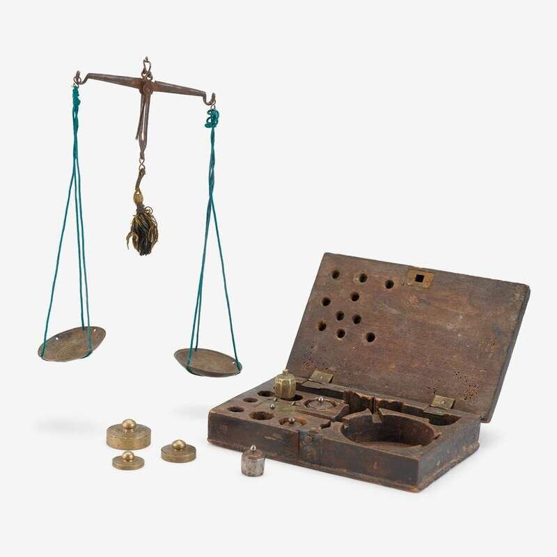 Qajar miniature weights and scale 19th century