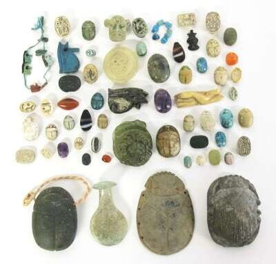 Collection of Egyptian scarabs, amulets and beads Ptolemaic period and earlier