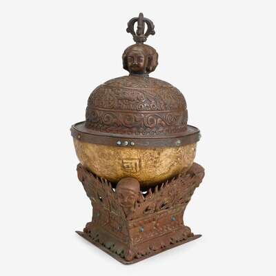 Tibetan kapala with bronze cover and stand 19th century