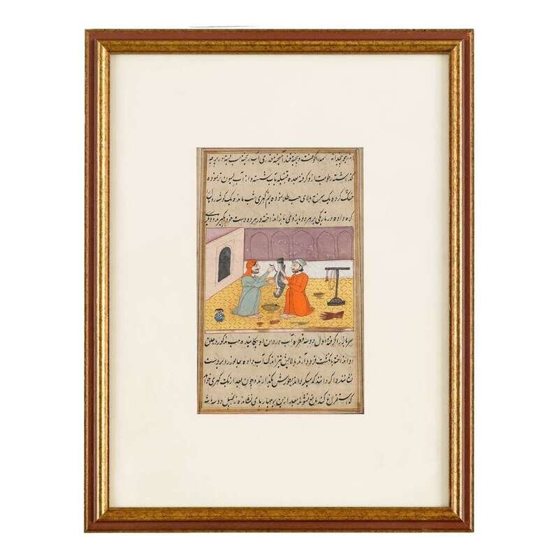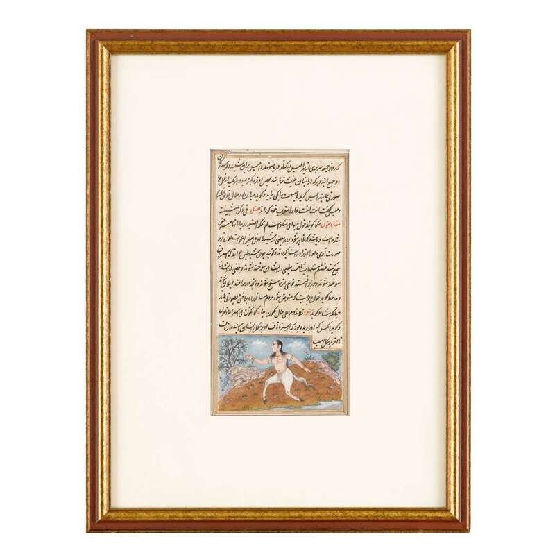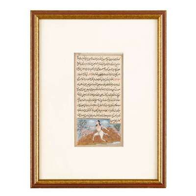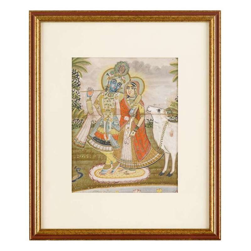 Together with a Jaipur style painting of Vishnu and Lakshmi, all framed and glazed. (3).
